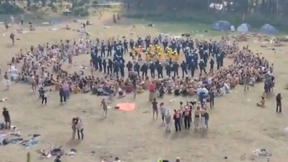 警务人员费尽九牛二虎之力让这些计划着全裸狂欢的嬉皮士围成一圈坐下来。
