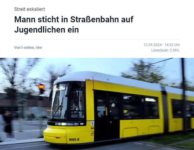 周三晚,柏林Wedding地区的M13路有轨电车上发生了一起由吵架升级的持刀袭击案。