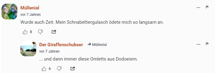 网友B:……然后总是吃那种用渡渡鸟蛋(已灭绝)做的煎蛋卷。