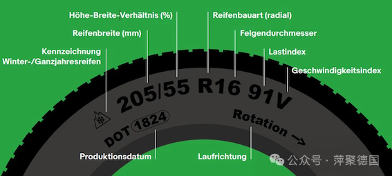 轮胎上的DOT编码是生产日期,DOT1824 表示该轮胎是在 2024 年第 18 周生产的。