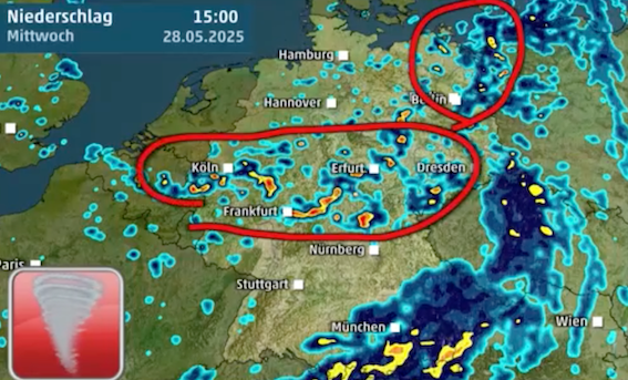 从周三下午开始,从吕根岛经图林根州到卡尔斯鲁厄可能会出现强雷暴。由于暴雨、冰雹和阵风,存在发生恶劣天气的风险。尤其是在德国东北部和南部,出现超级单体雷暴和龙卷风风险的可能性增加。