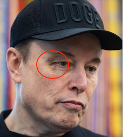 最让人难以置信的是,特朗普承认告别会上马斯克眼睛上的淤青是他干的。媒体最初普遍怀疑是马斯克嗑药所致。