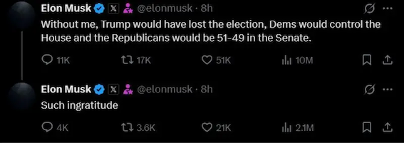 无论如何,马斯克还不想认输。他在X上写道:“特朗普的总统任期还剩三年半,但我还会活个40年以上。”